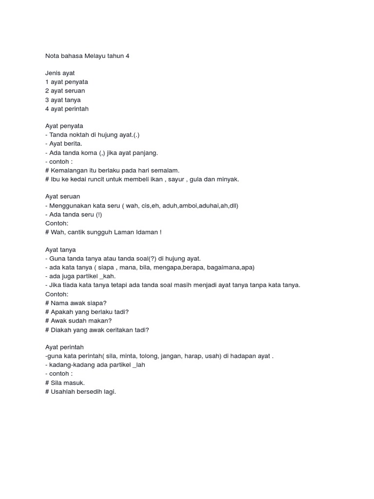 Nota Bahasa Melayu Tahun 4 PDF